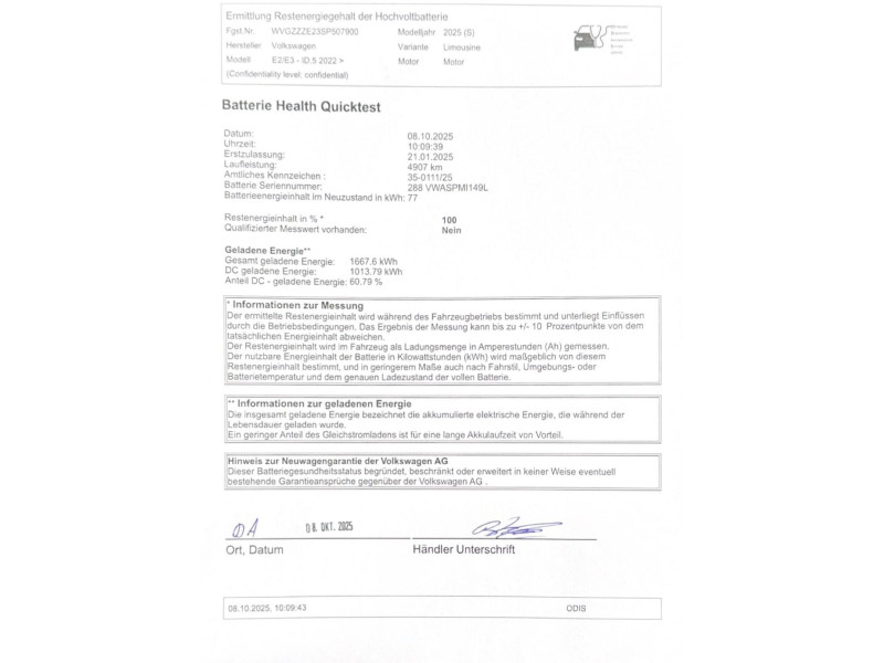Kraftstoffverbrauch (kombiniert): 16,60 kWh/100km, CO₂-Emissionen: 0 g/km